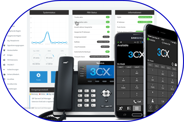 _________________________________512 simultane Kanäleinkl.3CX Pro Lizenzinkl.zertifizierter SIP Trunkinkl. Cloud Cluster Hostingunlimitierte Nebenstellenempfohlen für bis zu 2000 BenutzerTischtelefon,Web Client, Mobile -Client,Softphones (Win & Mac)150 Premium FunktionenAlle Features bereits inklusiveRufnummer-Mitnahmefür Österreich